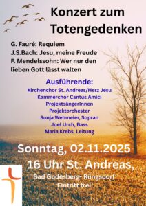 Sunja Wehmeier, Sopran. Joel Urch, Bariton. Kirchenchor St. Andreas/Herz Jesu. ProjektsängerInnen. Kammerchor Cantus Amici. Projektorchester. Leitung : Maria Krebs